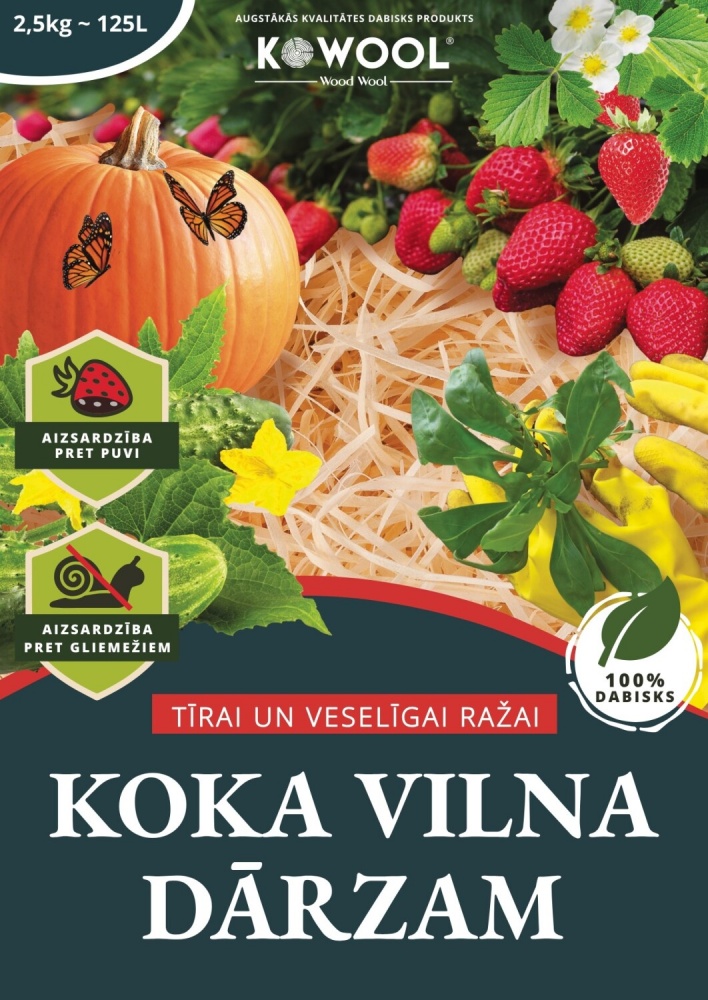 KOWOOL koka vilna dārzam ir 100% dabīgs materiāls, kas palīdz uzturēt vienmērīgu augsnes mitrumu un pasargā augļus un dārzeņus no netīrumiem, pelējuma un kaitēkļiem. Tā ir ideāli piemērota zemenēm, gurķiem, kabačiem, ķirbjiem un dekoratīvajiem augiem.