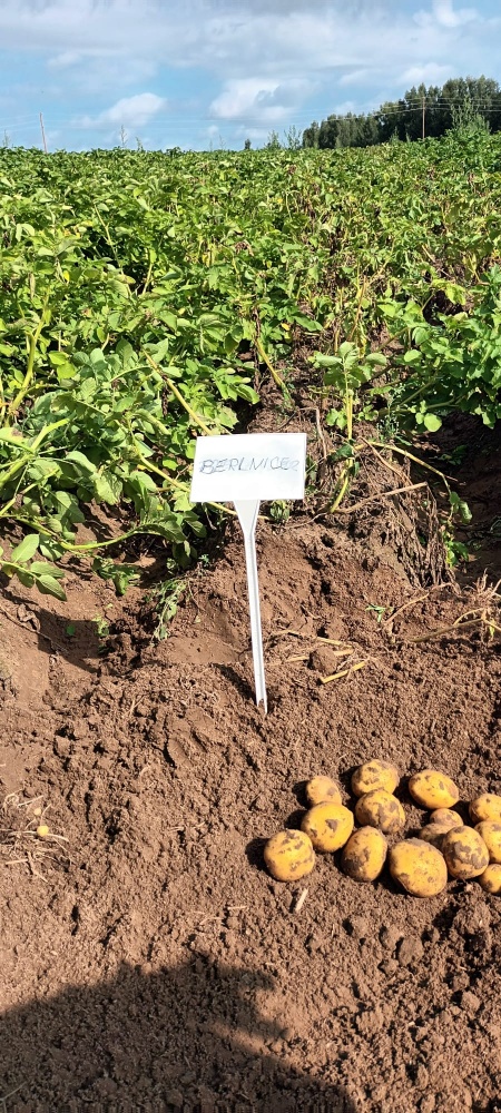 Mehāniski izturīgi. Ļoti vienādi visi. Lieli, skaisti un ļoti vienādi bumbuļi gandrīz apaļas formas ar seklā acīm. Ļoti labas atsauksmes no tiem kas to pamēģinājuši!