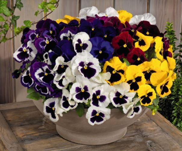 Augi veido spēcīgus cerus ar lieliem ziediem dažādos toņos — dzeltenā, baltā, zilā, violetā, sarkanā un kombinētās krāsās ar “sejiņu”.