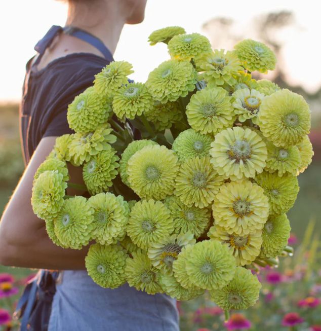 Cinnijas ‘Queen Lime’ (Zinnia elegans) ir viengadīga vasaras puķe ar pildītiem ziediem maigi laimzaļā tonī. Ziedi ir dekoratīvi, regulāras formas un bagātīgi veidojas no vasaras sākuma līdz rudens salnām.