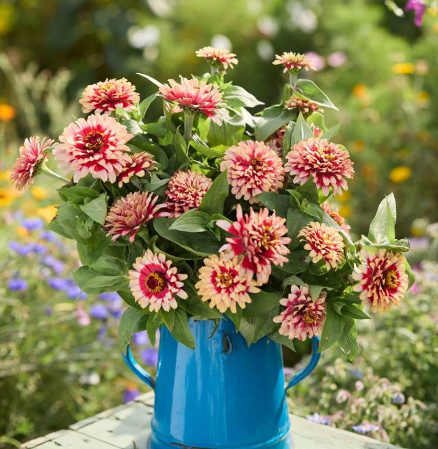 Cinnijas ‘Swizzle Cherry & Ivory’ (Zinnia elegans) ir viengadīga vasaras puķe ar daļēji pildītiem, kontrastainiem ziediem krēmīgi baltā krāsā ar ķiršsarkaniem ziedlapu galiem un dzeltenu centru. Ziedi ir dekoratīvi un bagātīgi veidojas no vasaras sākuma līdz rudens salnām.