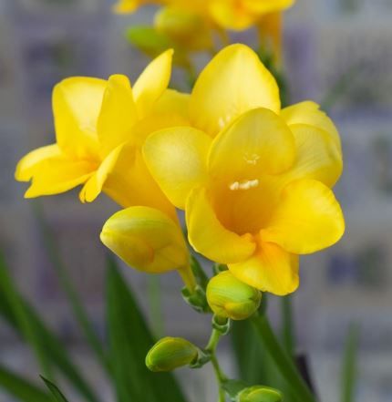 Frēzijas dzeltenas ir košas un ļoti smaržīgas puķes ar spilgti dzelteniem ziediem. Ziedi veidojas uz slaidiem, viegli izliektiem ziedkātiem un pakāpeniski atveras, nodrošinot ilgu un dekoratīvu ziedēšanu.