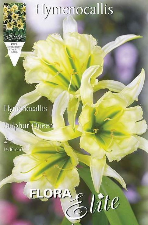 Hymenocallis Sulphur Queen ir neparasta un dekoratīva šķirne ar maigi dzelteniem, eksotiskas formas ziediem. Tās šaurās, izliektās ziedlapas veido zirnekļveida formu, kas piešķir dārzam vieglumu un tropisku noskaņu.
